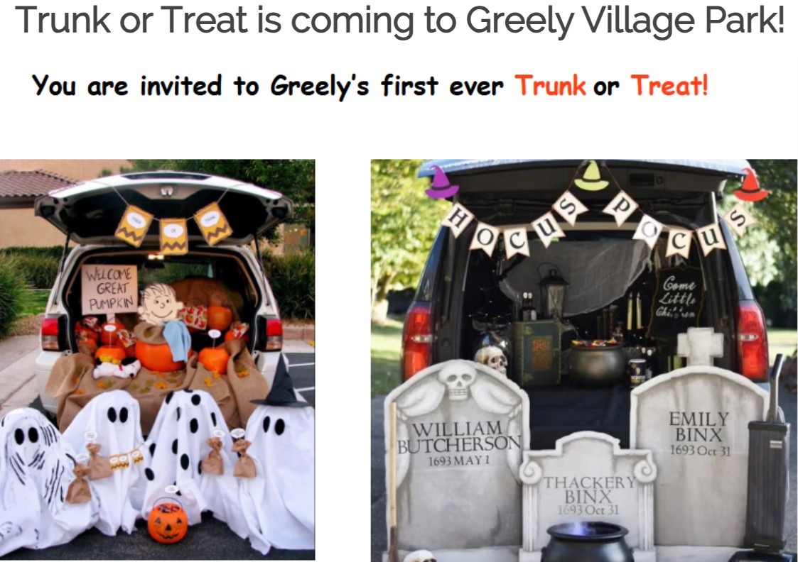 Trunk or Treat Saturday 25 October 2025 in Greely Village Park - 7292 Parkway Road